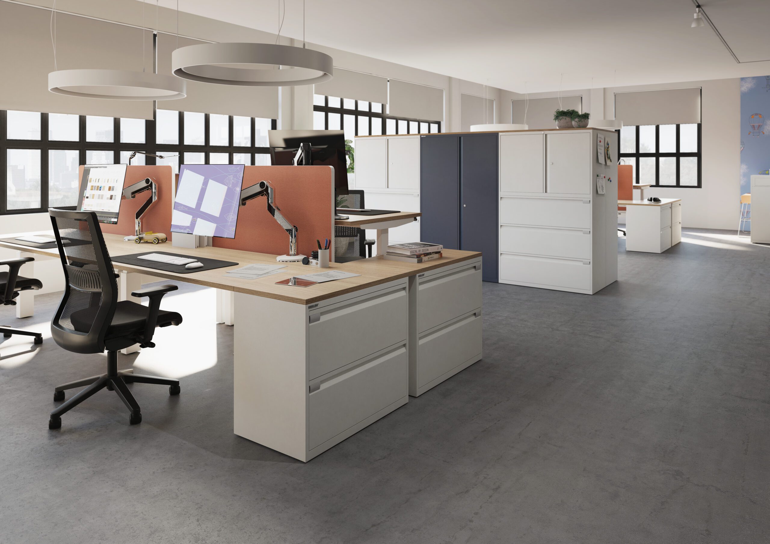 LateralFile’s lodges are ideal for a mobile workforce, with a range of locking options. Shelves can be ordered separately. Coat cupboards offer plenty of hanging space and contribute to a neat, clutter-free workplace.