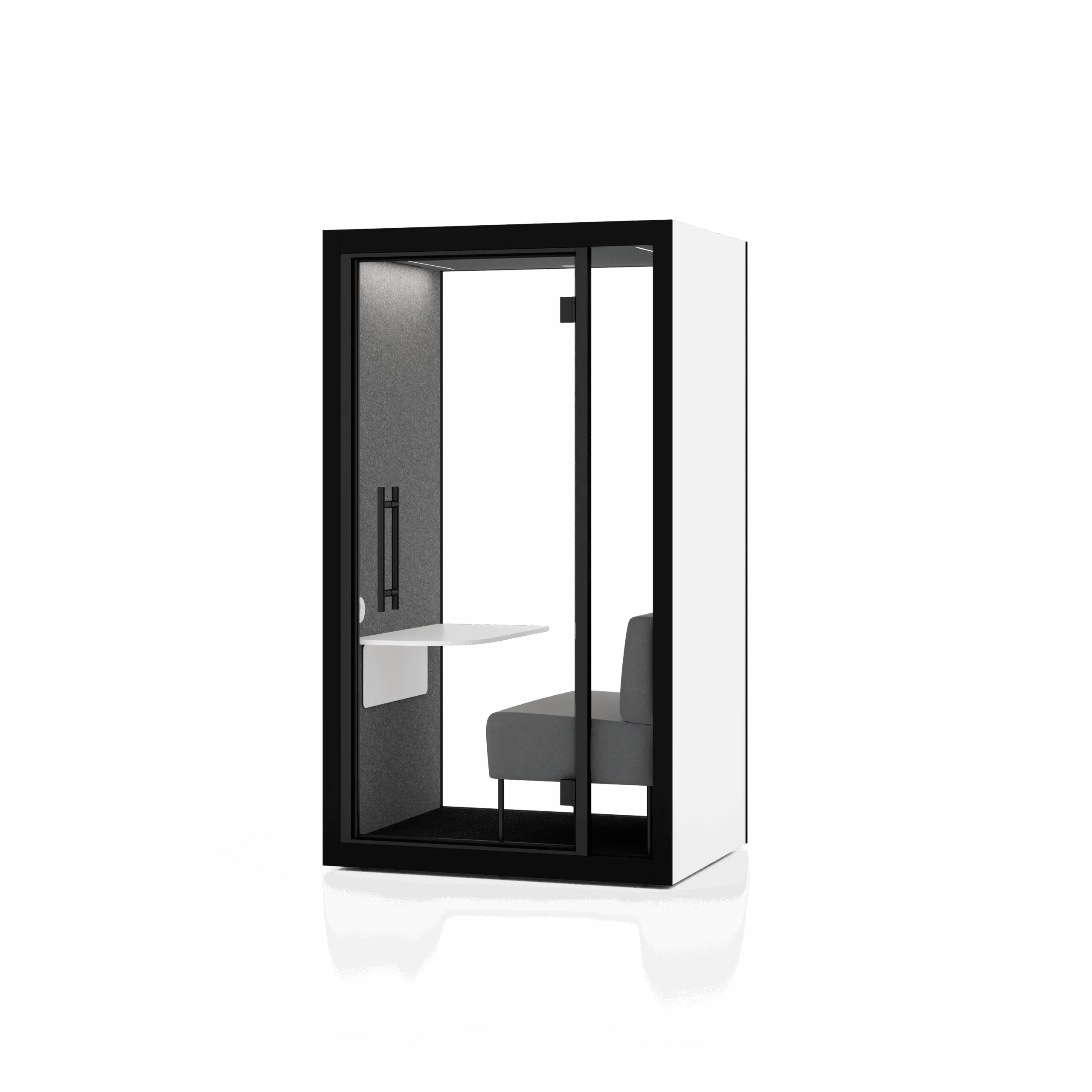 Create a space to get the task done in a private, comfortable space; the Chatbox Workalone has a magnetic lock, integrated power management, effective silent ventilation circulating air from ceiling to floor, LED lighting with a presence detector.